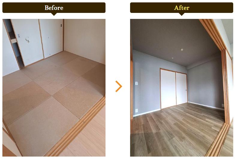 和室から洋室リフォーム(襖貼り替え/フロアタイル/クロス)