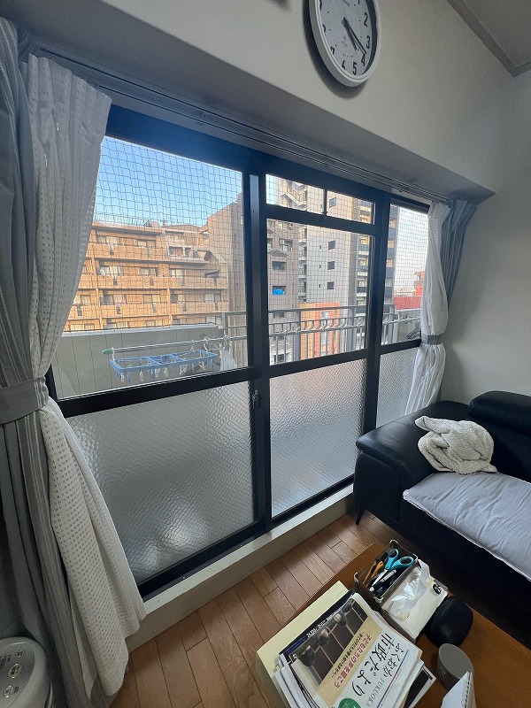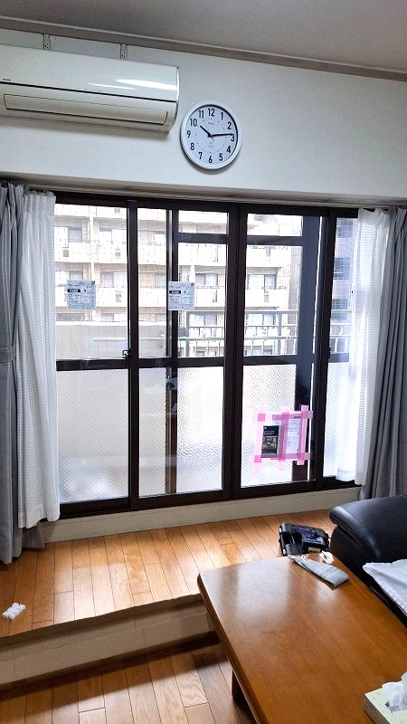 築44年のマンションにて、リビングの窓まわりに内窓リフォームを行いました。既存の掃き出し窓は単板ガラスで、冬場の冷えや外からの音が気になりやすい状態でしたが、YKK APの内窓【ウチリモ】を設置することで、窓まわりの断熱性と防音性を大幅に向上。外気の影響を受けにくくなり、冷暖房効率も高まったことで、年間を通して快適に過ごせるリビング空間へと改善しました。既存サッシを活かした施工のため工期も短く、見た目もすっきりと納まり、築年数を感じさせない居心地の良い室内環境を実現しています。